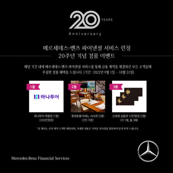 메르세데스-벤츠 파이낸셜 서비스 코리아, 창립 20주년 특별 이벤트 실시